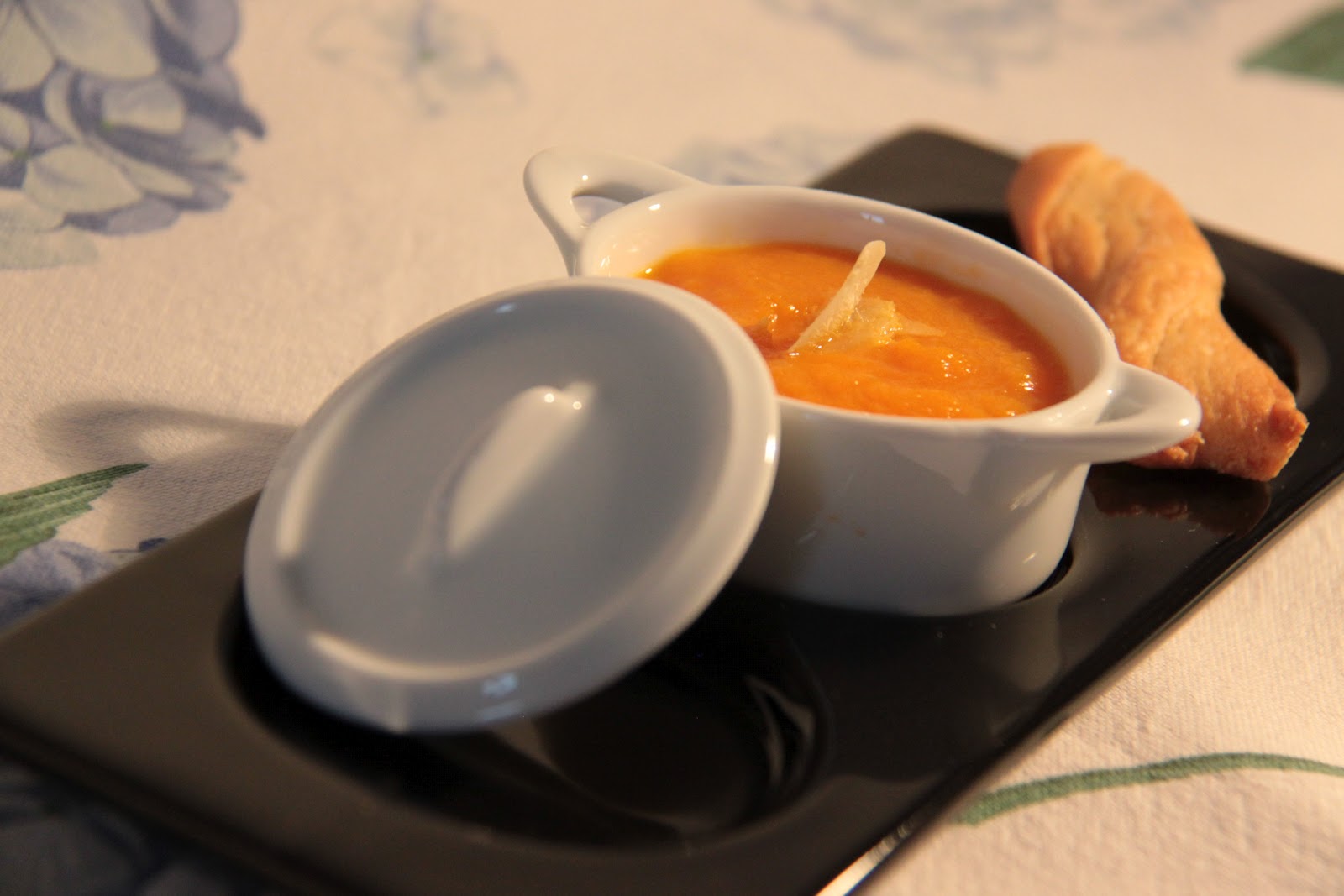 - Frullare il tutto (se c'é troppa acqua toglierne un po' per evitare di avere una consistenza troppo liquida) e aggiungere un po' di zenzero fresco grattuggiato. Il quantitativo dipende un po' dal gusto personale. Io ho aggiunto un po' di pepe, del tabasco (un goccio) e un po' di zenzero. Il risultato é stata una crema dolciastra e delicata con un tocco di piccante rinfrescato dallo zenzero. Ahah rido anche io con questa spiegazione :)